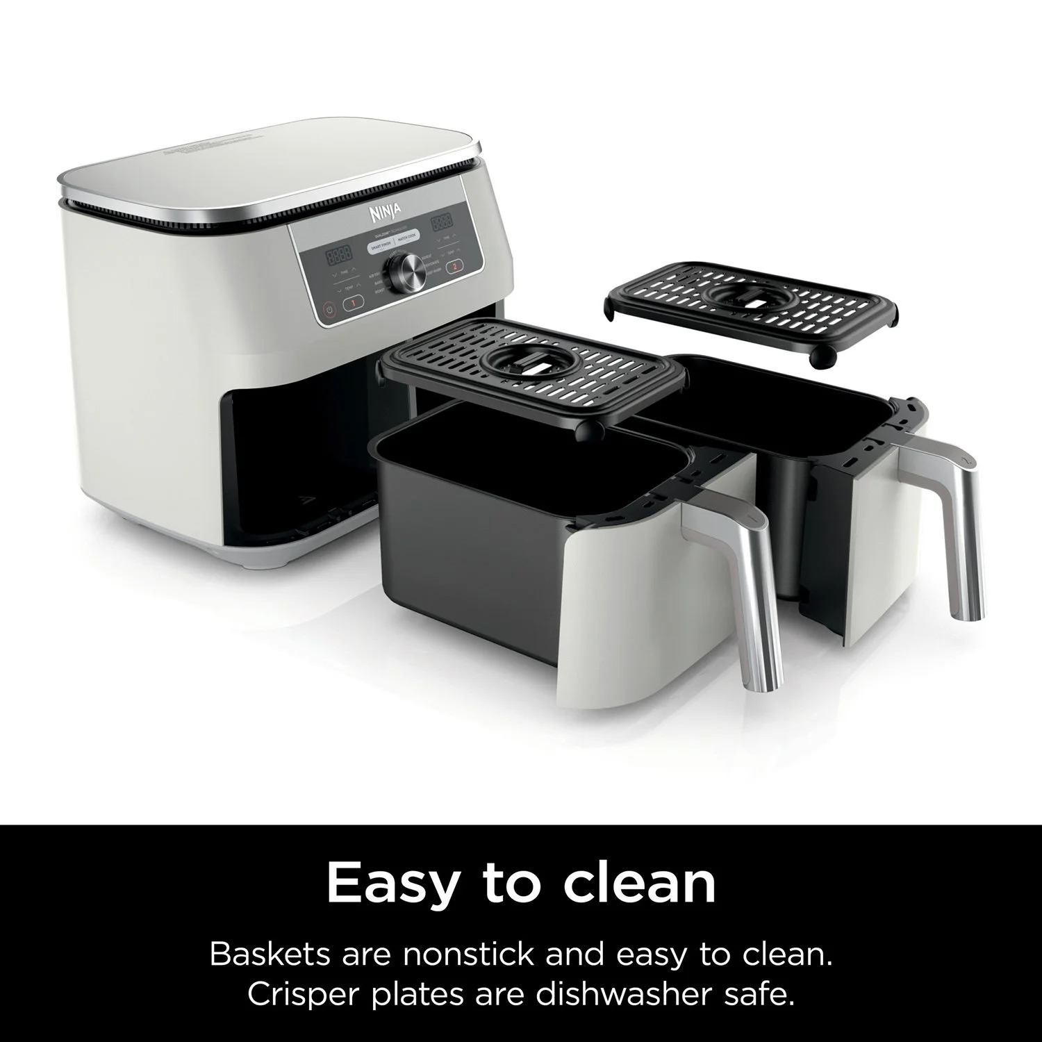 Descubre la freidora de aire Ninja Foodi 6 en 1 de 8 cuartos de galón y 2 cestas con tecnología DualZone. Sus dos cestas de cocción de 4 cuartos de galón ofrecen una capacidad de 8 cuartos de galón y te permiten cocinar dos alimentos, de dos maneras, y terminarlos al mismo tiempo. La tecnología DualZone incluye Smart Finish, que sincroniza inteligentemente los ajustes en cada zona para que ambos alimentos se cocinen con precisión y se terminen juntos. Match Cook sincroniza fácilmente los ajustes entre zonas para duplicar la capacidad. Además, esta freidora de aire incluye dos rejillas multicapa exclusivas para cada cesta, que mantienen los alimentos más cerca del elemento calefactor para un mejor asado.