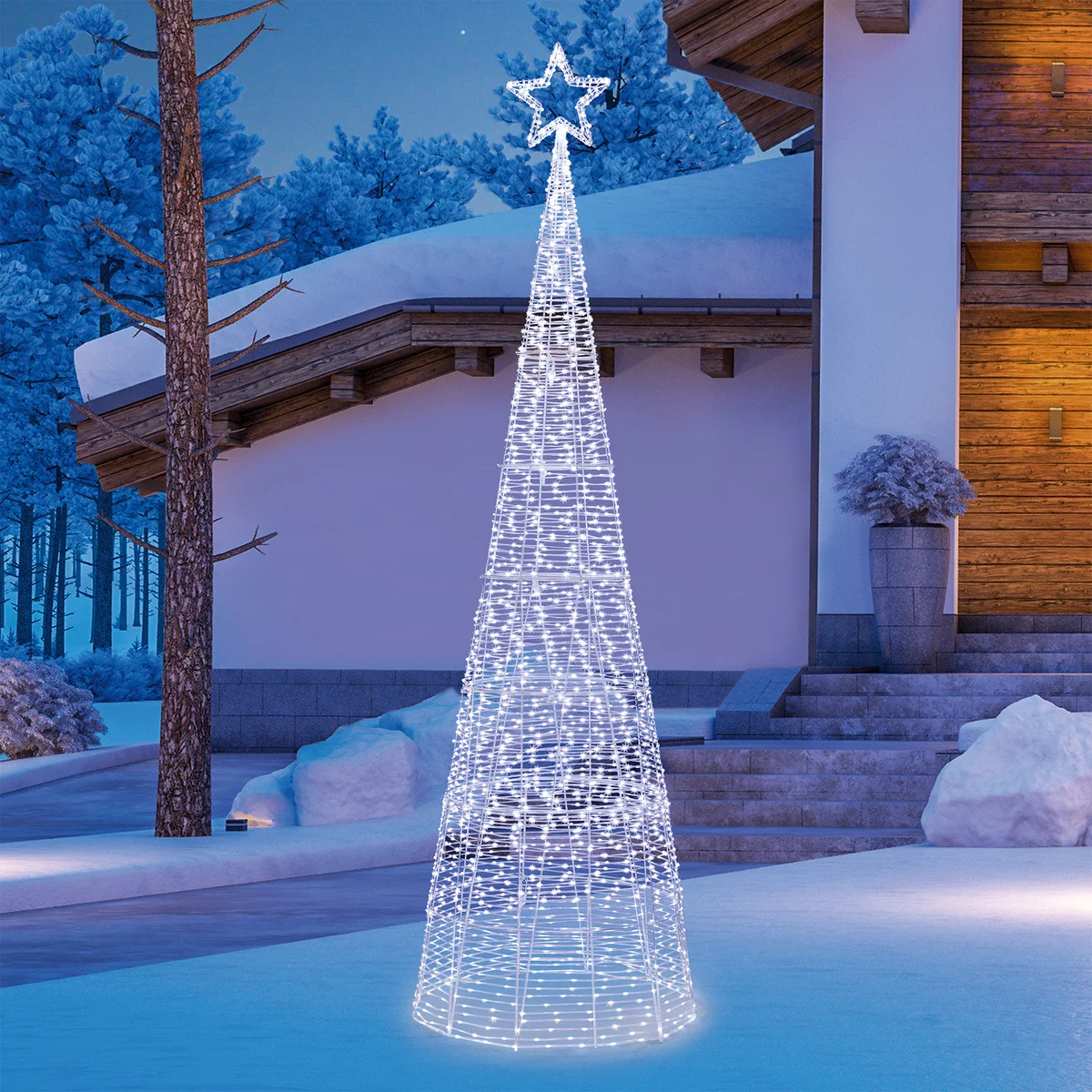 Agregue un toque especial a su jardín con el árbol de conos que cambian de color. Este árbol de 10 pies de alto está iluminado con luces LED blancas frías y múltiples. Cambie entre luz fija y luz intermitente para lograr un aspecto festivo y único. Viene con estacas para césped y niveles de árbol que se apilan fácilmente uno sobre otro para que su decoración navideña sea un proceso sencillo.