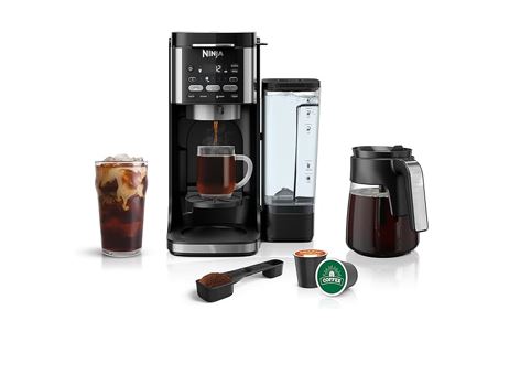 Cafetera caliente y helada Ninja DualBrew, prepara una cápsula de café más rápido en comparación con Keurig K-Elite al inicio. Cuenta con un sistema de café molido y cápsulas con 9 tamaños de infusión de molidos (taza pequeña, taza, taza XL, taza de viaje, taza de viaje XL, taza de viaje ¼ jarra, ½ jarra, ¾ jarra o jarra completa) además de 4 tamaños tradicionales de preparación de cápsulas (6, 8, 10 o 12 onzas. ). 3 opciones de estilo de preparación: seleccione clásico, rico o sobre hielo para sus posos o cápsulas de café. Prepara fresco sobre hielo para un sabroso café helado que nunca se diluye y la placa de calentamiento ajustable mantiene el café caliente hasta 4 horas. También las piezas aptas para lavavajillas y el adaptador extraíble Ninja pod te permiten limpiar fácilmente tu unidad.
