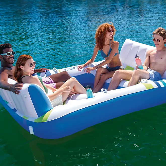 Disfrute de la mejor experiencia de relajación en el agua con la isla para cuatro personas con toldo de Intex. Ya sea que esté flotando en un río, descansando en una piscina o flotando en un lago, esta isla inflable ofrece la plataforma perfecta para el ocio y la diversión.
