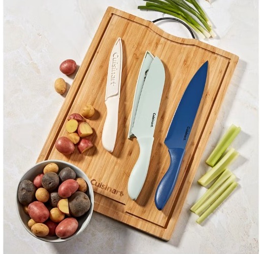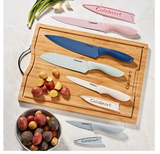 Fabricado con maestría con hojas de acero inoxidable de alta calidad y mangos ergonómicos de fácil agarre, este juego de cubiertos premium facilita cualquier tarea de corte. Las hojas están diseñadas con un suave revestimiento cerámico para un corte antiadherente sin esfuerzo. Su distintivo diseño con código de colores le da un toque moderno y reduce el riesgo de contaminación cruzada durante la preparación de alimentos. Los protectores de hoja a juego mantienen los cuchillos durante años de uso y garantizan un almacenamiento seguro.