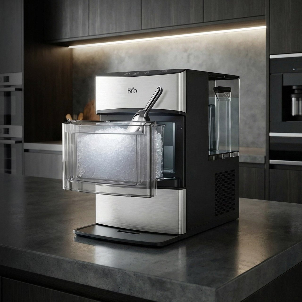 Diseñado para maximizar el espacio en la encimera, el depósito integrado de 2,66 litros ofrece fácil acceso y un práctico indicador LED de recarga.