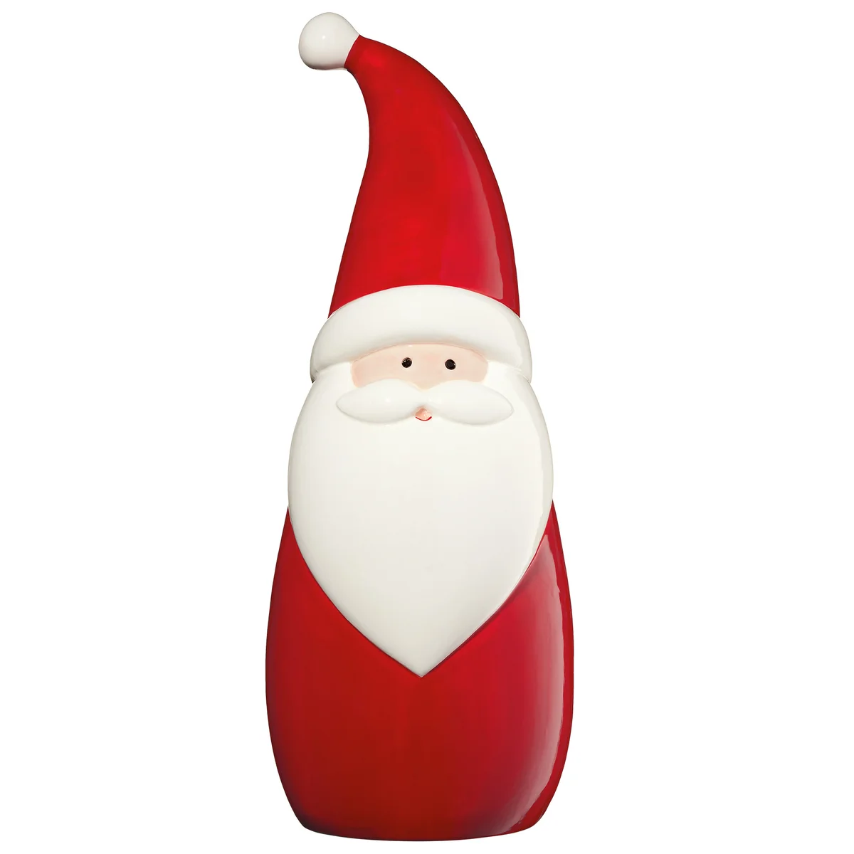 Este juego de 3 Papá Noel festivo y divertido seguramente traerá alegría a tu temporada navideña. Cada Papá Noel de cerámica ha sido pintado a mano en un rojo festivo brillante y tiene una cara única y expresiva. El juego causará un impacto en cualquier repisa o mesa.