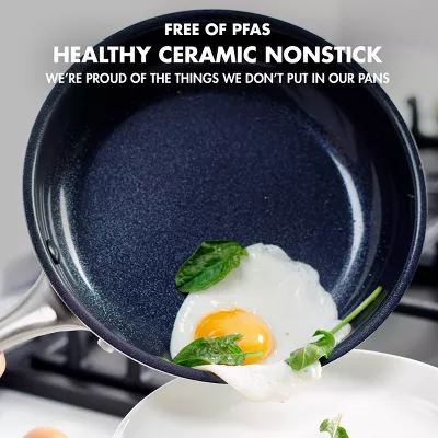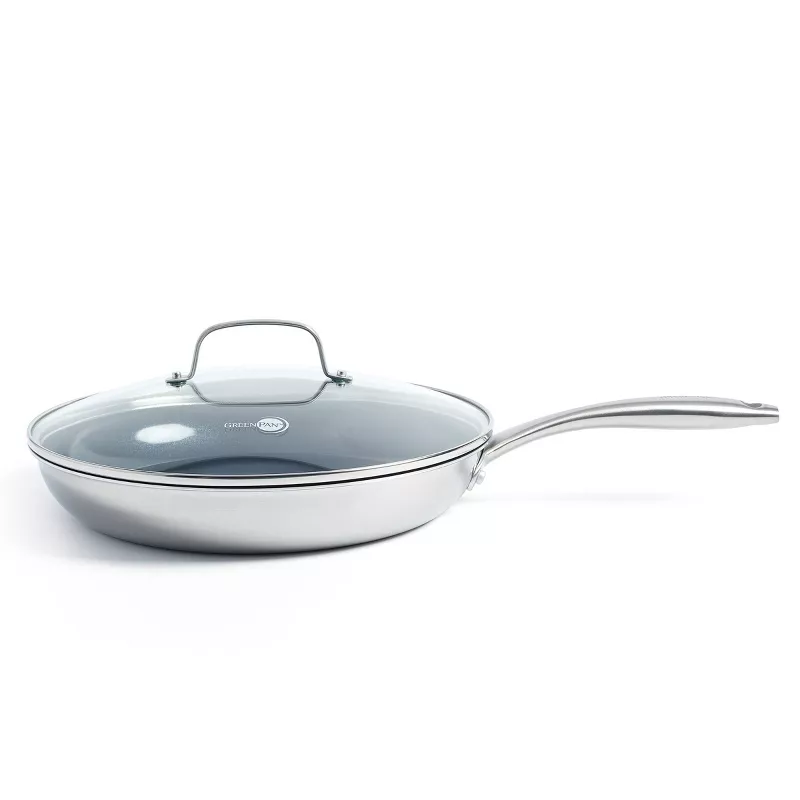 La colección Greenwich de GreenPan está equipada con una construcción de triple capa (dos capas de acero inoxidable con un núcleo de aluminio completo) para lograr un calentamiento uniforme y resultados de cocción profesionales en su hogar. Con un revestimiento antiadherente de cerámica reforzado con diamante, resistente a las astillas y seguro para utensilios de metal, esta sartén con tapa de 12″ cubre todas sus necesidades, desde salteados hasta horneados y más.