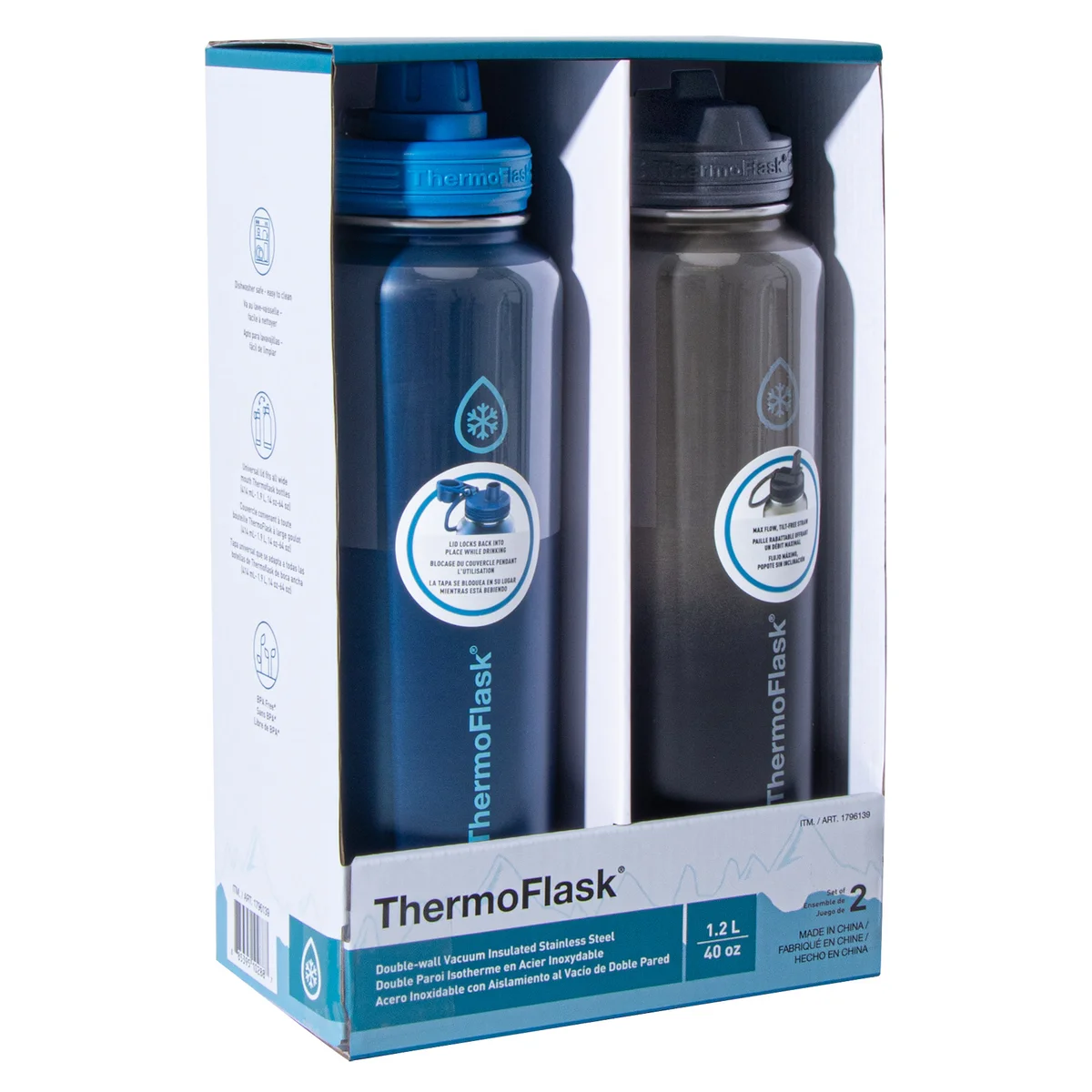 El paquete de 2 botellas de agua ThermoFlask de 40 oz te mantiene preparado para todo, desde los entrenamientos hasta los días de trabajo. Un favorito esencial de los fanáticos, cada juego es perfecto para horas de saciar la sed. Además, con tapas a prueba de fugas tanto con pajita como con boquilla, no hay necesidad de elegir entre una u otra.