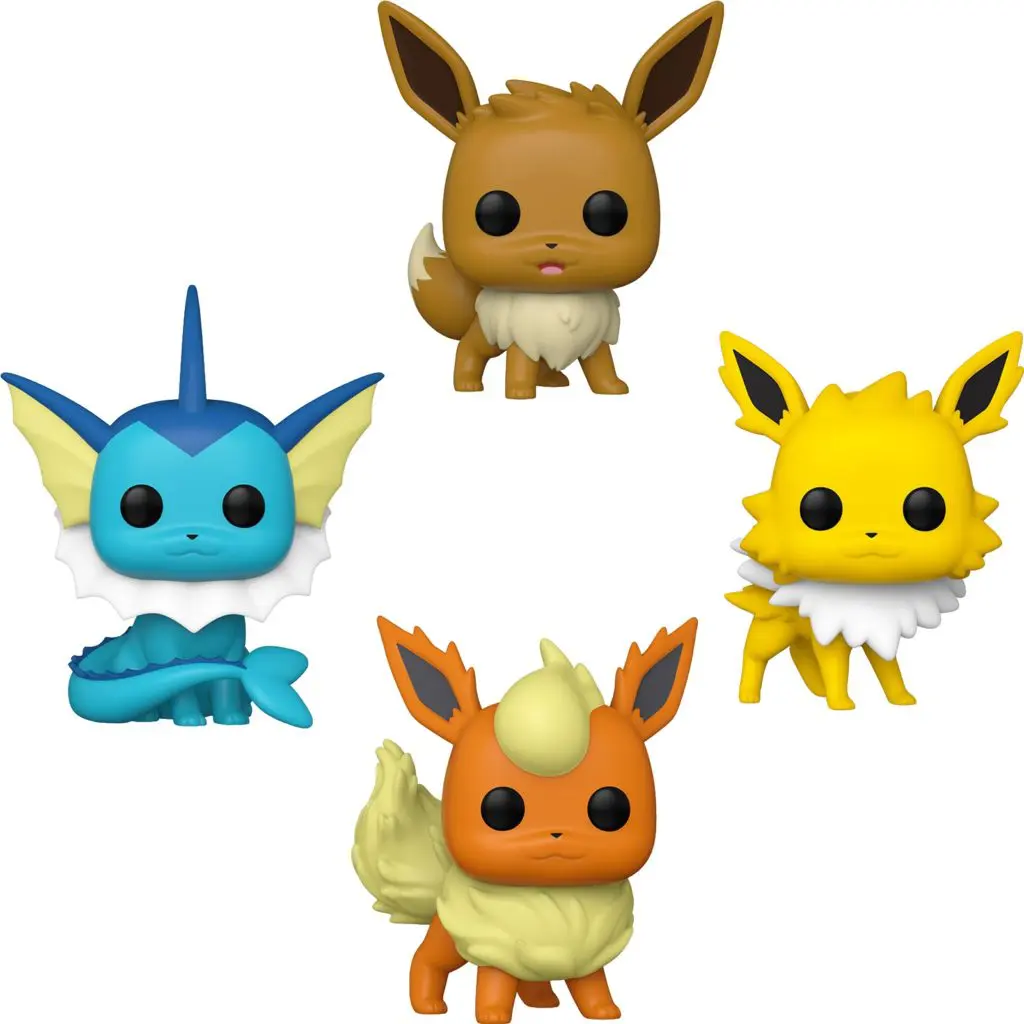 ¡Aumenta tu sueño de convertirte en entrenador! Atrapa este paquete de 4 que incluye: Pop! ¡Eevee, Pop! ¡Vaporeon, Pop! Jolteon y Pop! Flareon para añadir a tu colección de Pokmon. Las figuras de vinilo varían en altura desde aproximadamente 3.75 pulgadas a 3.9 pulgadas de alto.