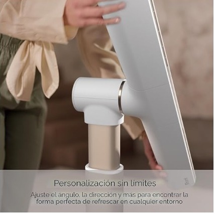 Personalización sin límites: El ventilador pivota desde el modo vertical enfocado de Torre hasta el modo horizontal extendido de Manta de Aire, gira las rejillas en múltiples direcciones, oscila hasta 180° y ajusta la altura.
